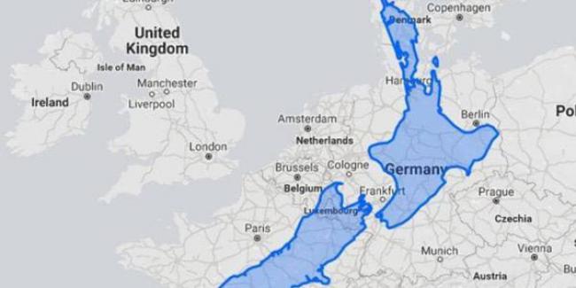 在上周五的推特上,Clark表示新西兰常常被公众普遍认为是一个小国,所以把新西兰的地图放在欧洲地图的上比较来看,是很有趣的。