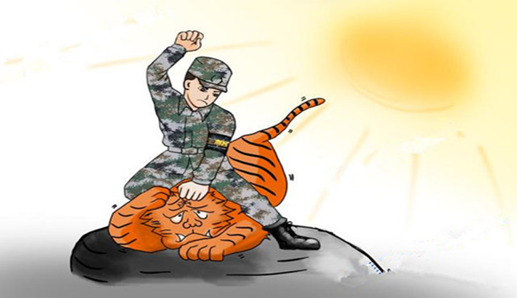 据《解放军报》去年12月的评论,只有充分考虑困难风险,下定决心打硬仗破坚冰,拿出除恶务 尽、决战决胜的决心意志,拿出开弓没有回头箭的胆魄勇气,才能解决好反腐败这个历史性课题和世界性难题。腐败没有特区,反腐没有禁区,像周永康、徐才厚这 样的“大老虎”都动了,还有谁动不得?党中央、习主席对贪污腐败决不姑息、对违法违纪必查必究,一抓到底、务求见底的决心意志是坚定不移的。