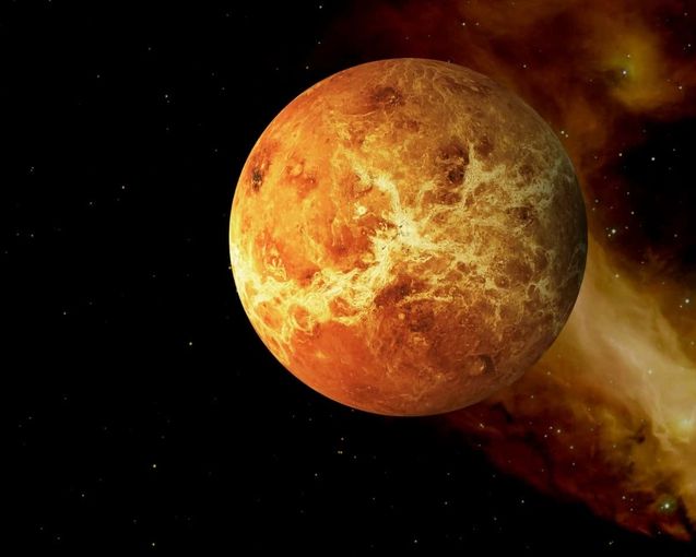 金星,因为质量、体积和地球很相似,所以也被称作地球的姊妹星。金星表面温度十分高,融化掉一块铅也是毫不费力。大气压强也特别高,其星球表面的风速是地球自转速度60倍。但如果把时间推前几十年,那时太阳光还没现在这么强,金星上比现在要凉快的多,还会有液态水的存在。