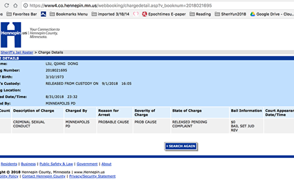 综合媒体9月3日报道,网传截图显示京东创始人刘强东身穿囚衣被明尼苏达州警方拘捕,警方亦证实事件。明尼苏达州亨内平郡警察局的记录显示,刘强东在当地时间8月31日晚11点32分被逮捕,9月1日下午4点后被释放。目前刘强东案子的状态是“获释等待接受传唤”。