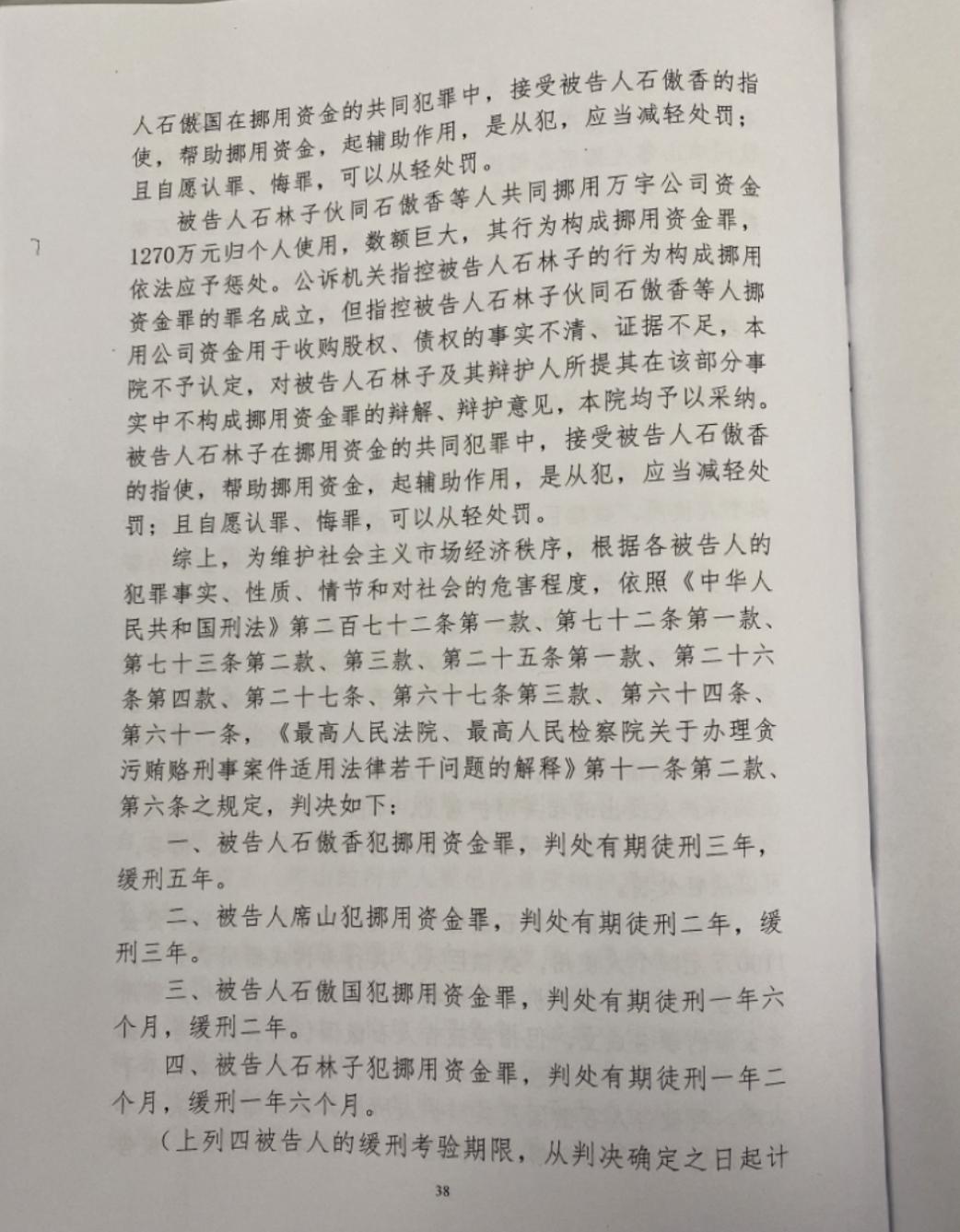 ▲石傲香案判决书